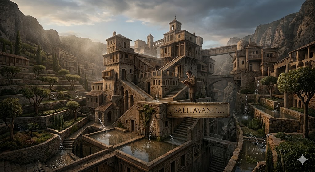 Questo è l’errore più rivelatore. “Salitare” non esiste in italiano come forma verbale standard né come arcaismo letterario attestato. Calvino usa un italiano sorvegliato, con latinismi o neologismi motivati. Un verbo fantasma morfologicamente regolare ma lessicalmente inesistente è un classico artefatto di generazione automatica: il modello costruisce la forma verbale per analogia (salire → salitare) senza verificarne l’esistenza.